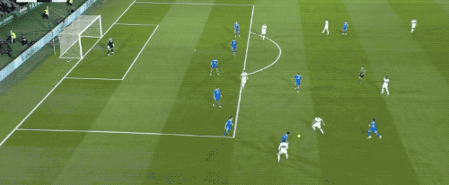 ในนาทีที่ 76 ทรูสาร์ด ซึ่งทำประตูไปแล้วก่อนหน้านี้ในเกมนี้ ส่งบอลให้เพื่อนร่วมทีม เอเซ่ควบคุมพลิกบอลหลบกองหลังไปทำแฮตทริกได้สำเร็จ