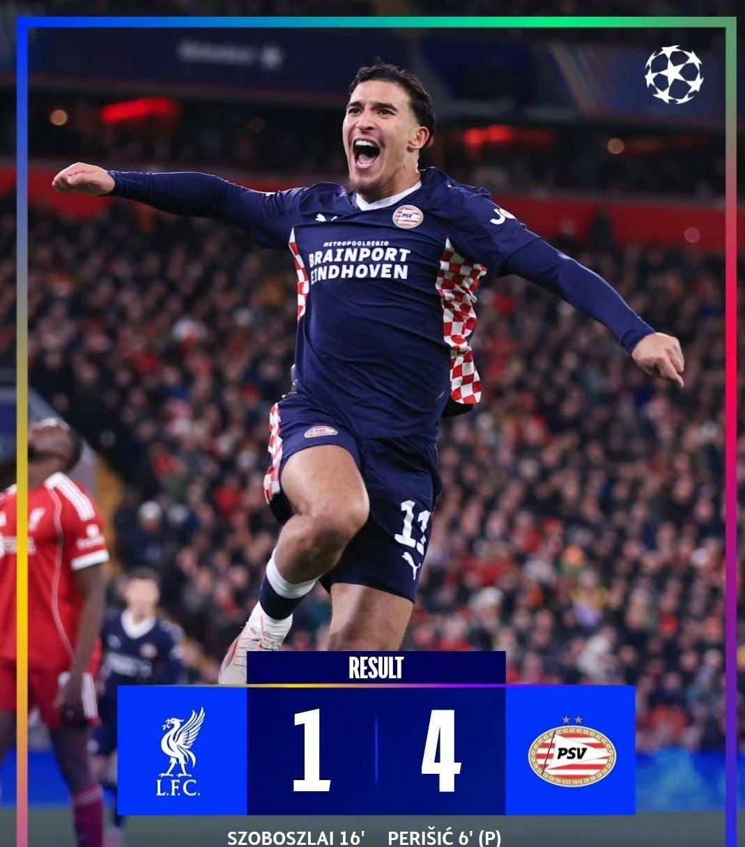 ด้วยชัยชนะของปารีส แซงต์-แชร์กแมง 5-3 และลิเวอร์พูลแพ้ 1-4 ทำให้ตารางคะแนนล่าสุดของยูฟ่า แชมเปียนส์ลีก แสดงให้เห็นว่ามีเพียงสองคะแนนที่แยกอันดับสองถึงอันดับสิบ