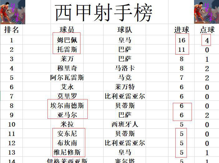 ในตารางคะแนนดาวซัลโว คีเลียน เอ็มบัปเป้ กองหน้าดาวเด่นของปารีส แซงต์-แชร์กแมง นำเป็นจ่าฝูงด้วย 16 ประตู ขณะที่ ตอร์เรส ของบาร์เซโลนา ทำแฮตทริกในเกมนี้ ส่งผลให้ยอดรวมส่วนตัวของเขาทะลุหลักสิบประตูเรียบร้อยแล้ว ตามหลังเอ็มบัปเป้เพียง 5 ประตู โรเบิร์ต เลวานดอฟสกี้ และ มูริกี ครองอันดับสามร่วมกันด้วยผลงาน 8 ประตูเฮอร์นันเดซและยามาลตอนนี้ทำประตูได้เท่ากับอายิวและโมริโยแล้ว โดยรั้งอันดับที่หกร่วมกัน แอนโธนีและบูคานันตามมาติดๆ โดยเข้าร่วมกับวินิซิอุสและคนอื่นๆ ในอันดับท็อปเท็นด้วยจำนวน 5 ประตูเท่ากัน ซึ่งแสดงให้เห็นถึงการแย่งชิงตำแหน่งดาวซัลโวสูงสุดอย่างดุเดือดในฤดูกาลนี้