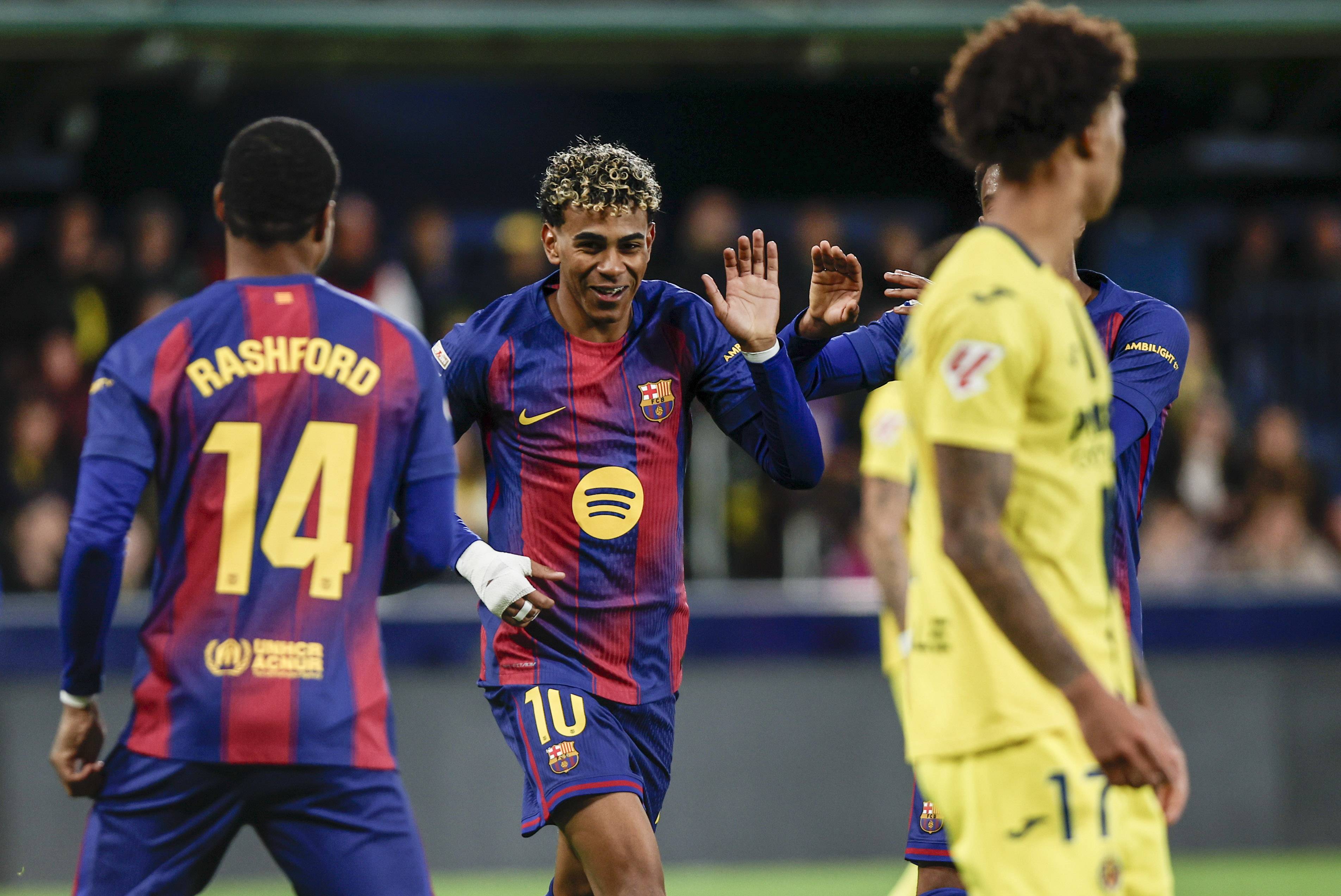 เมื่อวันที่ 21 ธันวาคม ยามาล นักเตะบาร์เซโลนา (กลาง) ทำประตูที่สองของทีมได้ สำนักข่าวซินหัว/EPA