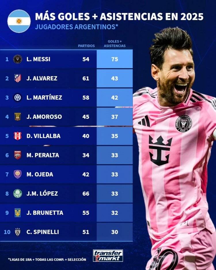 เมสซี่ ยังคงเป็นนักเตะที่ดีที่สุดของอาร์เจนตินา! เมื่อปีที่แล้วเขาอยู่ในลีกของตัวเองภายในทีม! ความสามารถของ_Álvarez_ ในลีกชั้นนำทั้งห้าของยุโรป2026-01-14